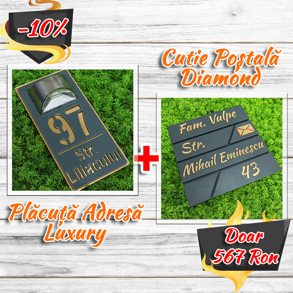 Pachet număr de casă luxury + cutie poștală diamond antracit - auriu oglindă